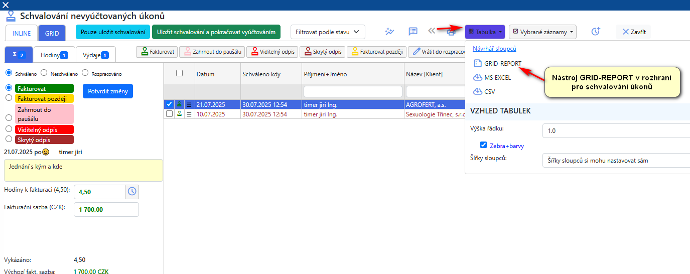 Došlo k opravě volání nástroje GRID-REPORT v rámci rozhraní pro schvalování/vyúčtování úkonů.